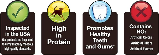 - Promotes dog dental health by helping to clean teeth and gums through mechanical chewing action
