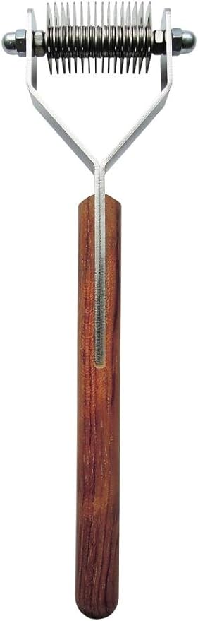 - RELIABLE DOG GROOMING TOOL: Made with stainless steel and a wooden handle for an easy grip, this pet rake stripper tool is perfect for deshedding and thinning your cat or dog’s coat.