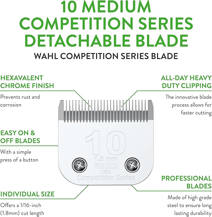 Wahl Professional Animal #10 Medium Competition Series Detachable Blade with 1/16-Inch Cut Length (#2358-100),Steel