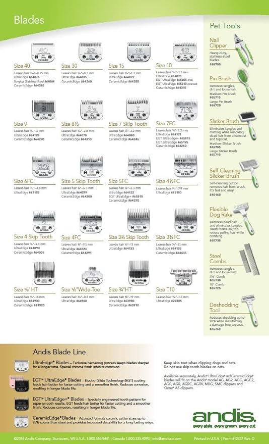 - COMPATIBLE: The dog clipper blade is compatible with the Andis AG, AGC, AGP, AGRC, AGCL, AGR Plus, AGRV, DBLC, MBG, and SMC detachable blade clippers; It also works with the Oster A5 and Wahl KM series.