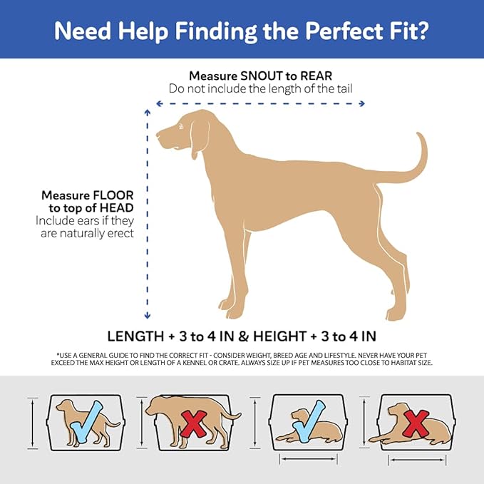 - Suitable for Pets 20-25 lbs: Pet Kennel exterior dimensions - 26" L x 18.6" W x 16.5" H; Interior dimensions - 23.8" L x 17" W x 15.5" H. Product weight – 5 lbs. If in doubt, buy a size up. No tools required for assembly