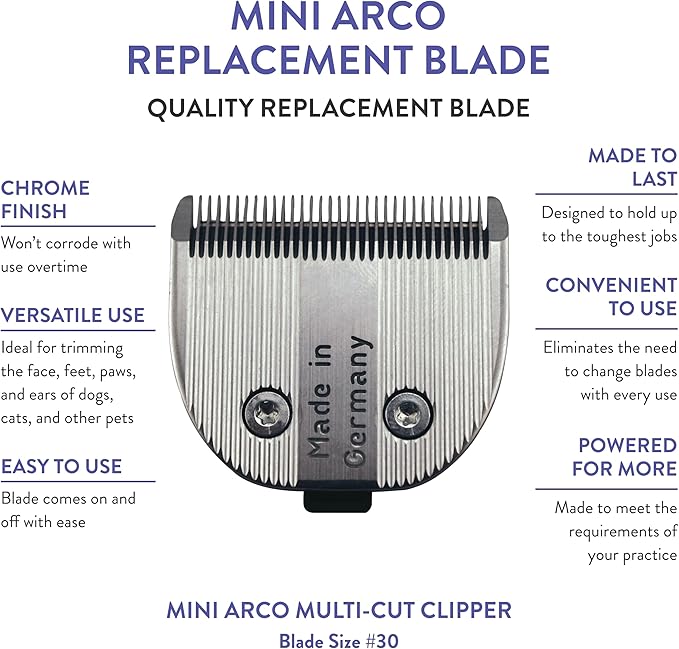 - High-Quality Replacement Blade: Keep your pet's coat looking beautiful with this fine #30 cut blade designed for Wahl's MiniArco Trimmer (model #8787-450A)