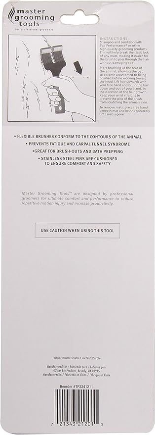 Master Grooming Tools Double-Sided Soft Flexible Slicker Brushes — Versatile Brushes for Grooming Dogs - Purple, 8"L x 4"W, Large