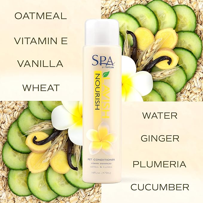 - SPA NOURISH - A moisturizing conditioner for dogs that's rich in vitamins that help repair dry and damaged hair.