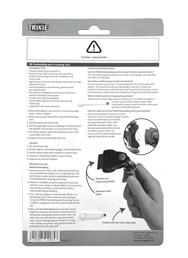 TRIXIE Pet Deshedding and Grooming Tool, Medium and Large Dogs, 4" x 6" (11x15cm)