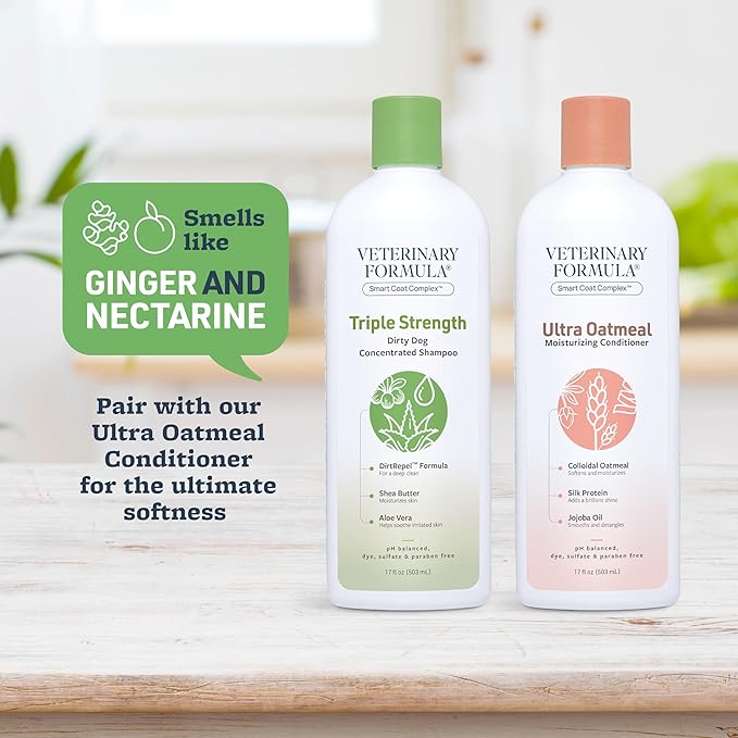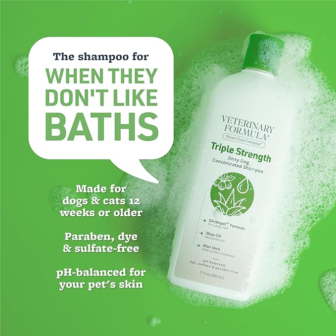 Veterinary Formula Smart Coat Complex Triple Strength Dirty Dog Concentrated Shampoo, 17 Fl oz – DirtRepel Tech Cleans Extra Dirty and Smelly Dogs – Contains Shea Butter and Aloe Vera to Soothe