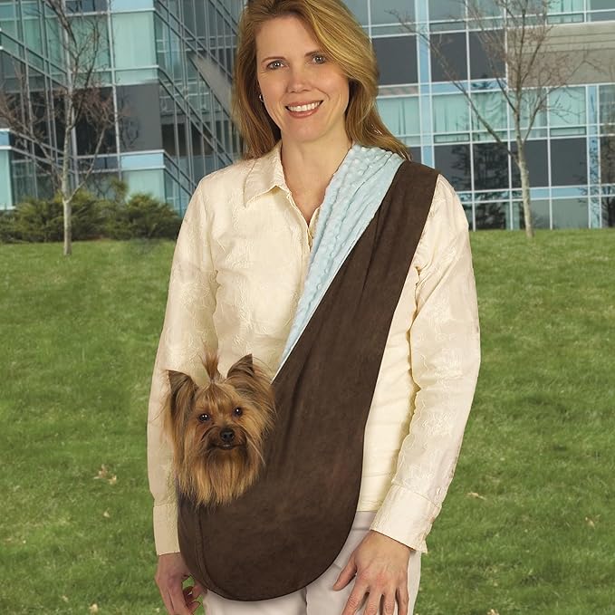 Reversible Sling Pet Carriers — Versatile Polyester Over-the-Shoulder Carriers for Small Dogs, Brown/Blue