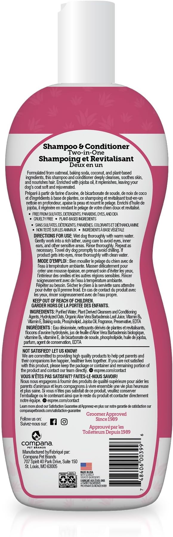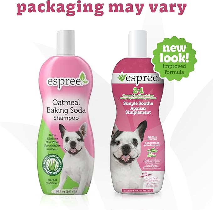 - SOOTHING OATMEAL FORMULA: Espree Soothing Oatmeal Shampoo & Conditioner deeply cleanses and nourishes with a blend of oatmeal, baking soda, and coconut, helping to relieve dry, itchy skin while leaving your dog’s coat soft and shiny