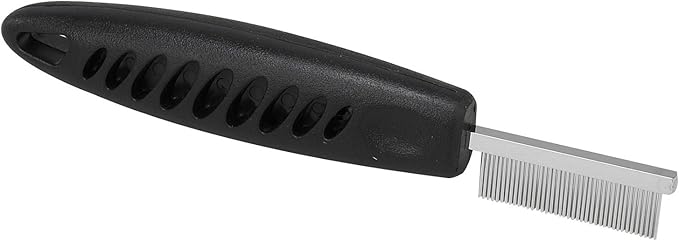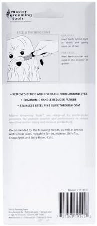 - Features 40 tightly spaced ½" stainless steel pins to rid hair of debris from tear stains, food, and dirt