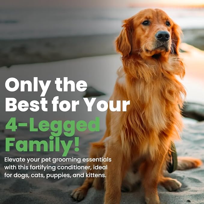- Unique Formula: Infused with silk protein, castor oil, and more, the Fortifying cat and dog conditioner nourishes, moisturizes, and detangles your pet’s coat. The rich blend of moisturizers protects your pet’s fur from daily stresses and damage.