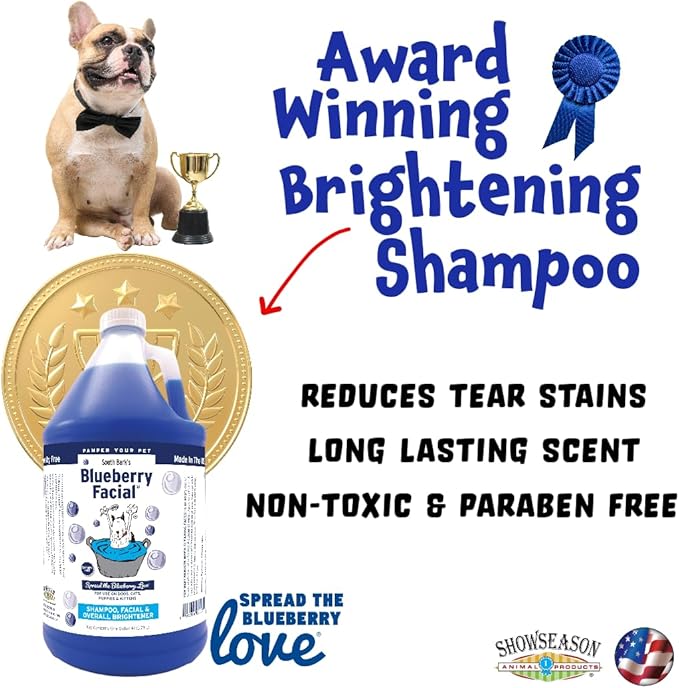 - SPREAD THE BLUEBERRY LOVE: Humans get facials...so why not your dog? This is an easy way to turn any bath into a spa. It's not just for facials; use it as an overall body shampoo to clean and brighten any coat color—aromatherapeutic and pH-balanced.