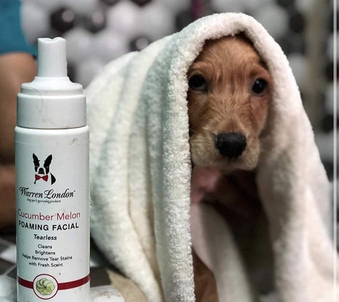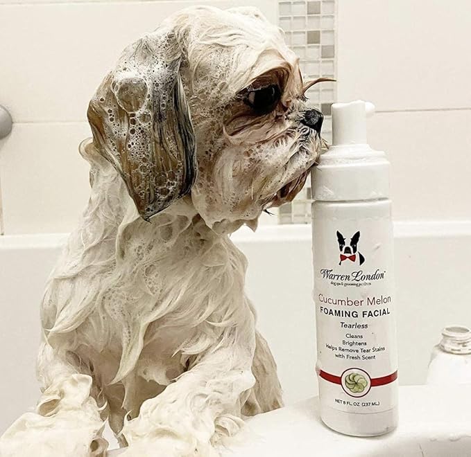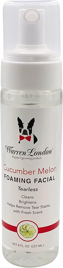 Warren London Foaming Pet Facial | Tear Free Dog Face Wash | Tearless Dog Shampoo for Faces & Dog Eye Stain Remover | Refreshing Cucumber Melon Wash | Made in USA | 8oz