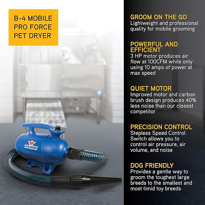 - HEALTHIER ENVIRONMENT – Powerful yet quiet, XPOWER force dryers help protect your hearing and pet sensitivities without sacrificing drying time.