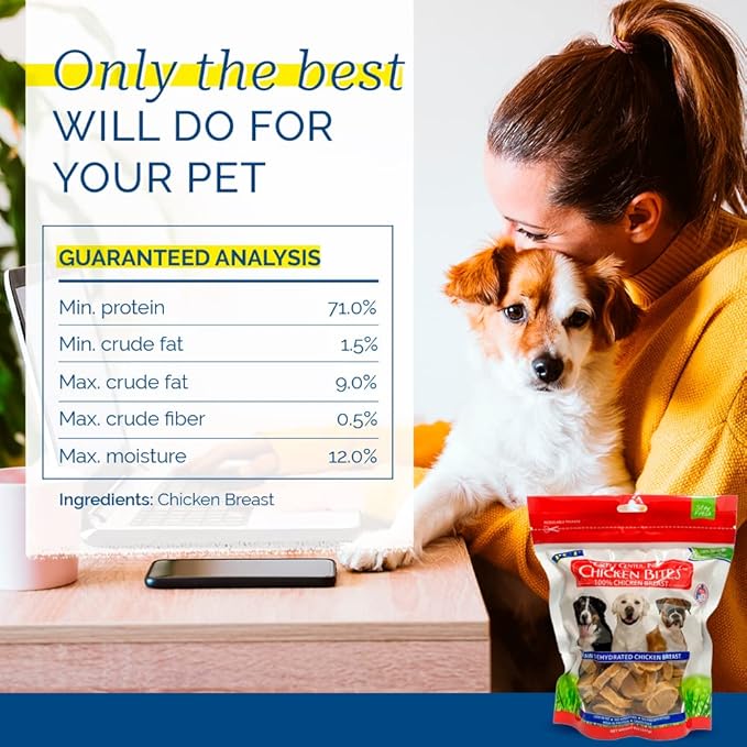 - Chicken Bites are 100% natural, dehydrated, made of single-ingredient chicken breast