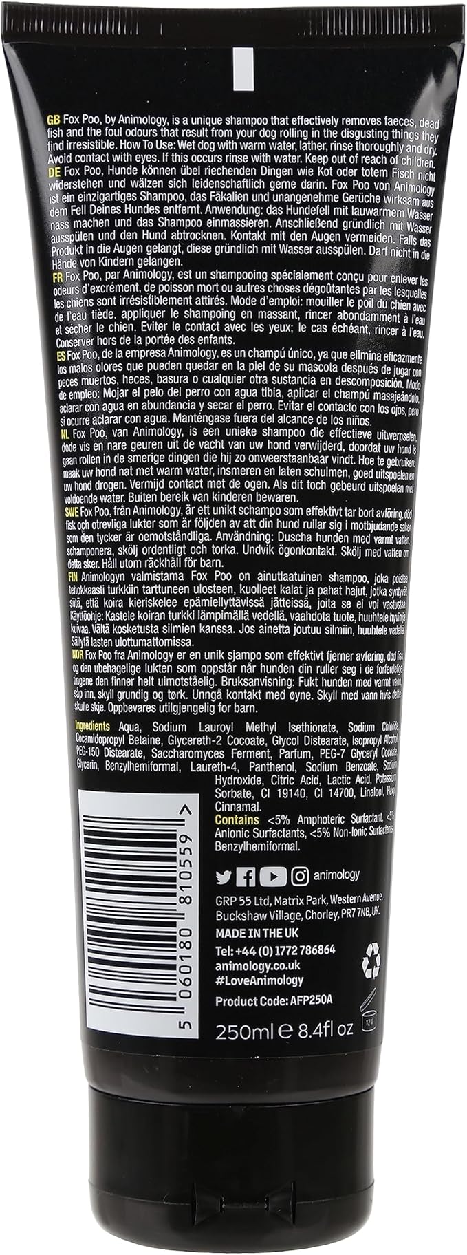 - A unique shampoo that effectively removes faeces and foul odors from a dog's coat.