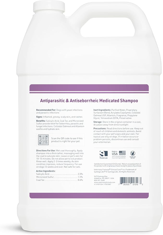Veterinary Formula Clinical Care Antiparasitic & Antiseborrheic Medicated Dog Shampoo, 128oz – Help Alleviate Your Dog's Flaky Skin and Coat – Paraben, Dye, Soap Free