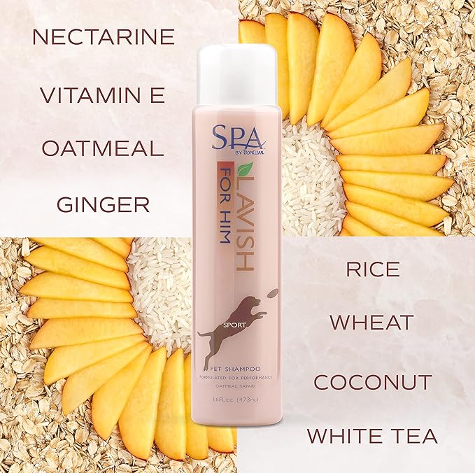TropiClean SPA Lavish Dog Shampoo | Sporty Scented For Him Deodorizing Dog Shampoo | Naturally Derived Salon Grade Ingredients | Made in the USA | 16oz