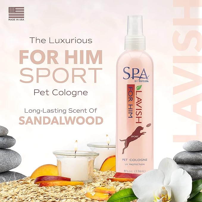 TropiClean SPA For Him Male Dog Cologne Spray Long Lasting | Sporty Scented Dog Deodorizing Spray | Naturally Derived Salon Grade Ingredients | Made in the USA | 8oz