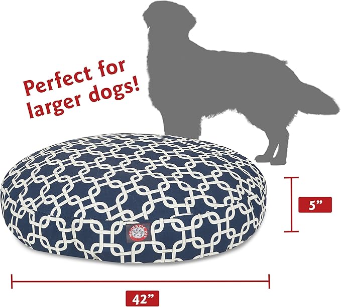 Navy Blue Links Large Round Indoor Outdoor Pet Dog Bed With Removable Washable Cover By Majestic Pet Products