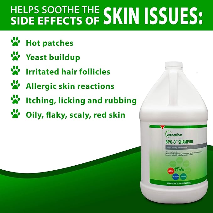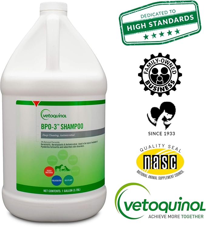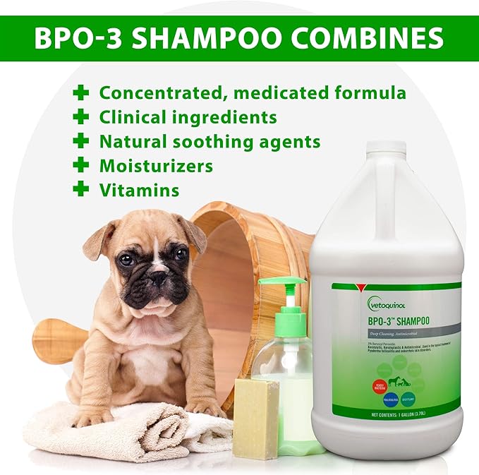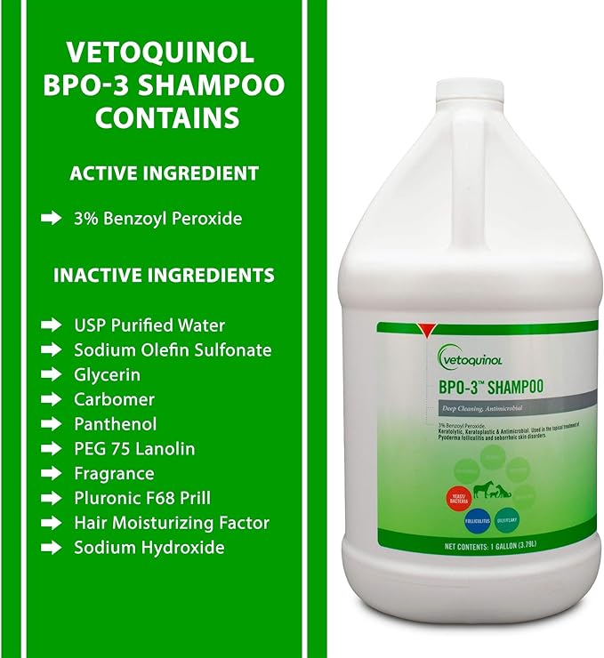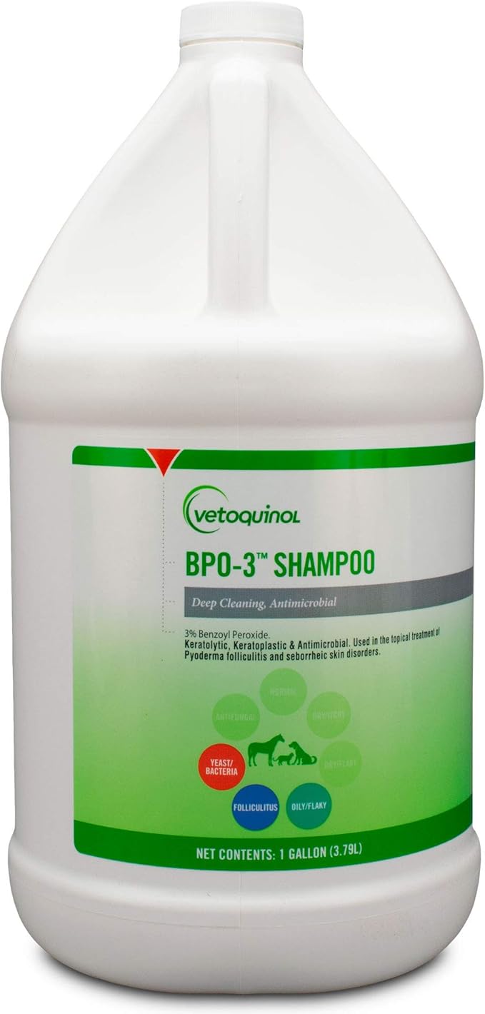 Vetoquinol BPO-3 Shampoo for Dogs, Cats & Horses (3% Benzoyl Peroxide) – 128oz – Deep Cleaning, Medicated Shampoo Opens & Flushes Hair Follicles – Degreases Oily Coats – Soothes Red, Flaky, Itchy Skin