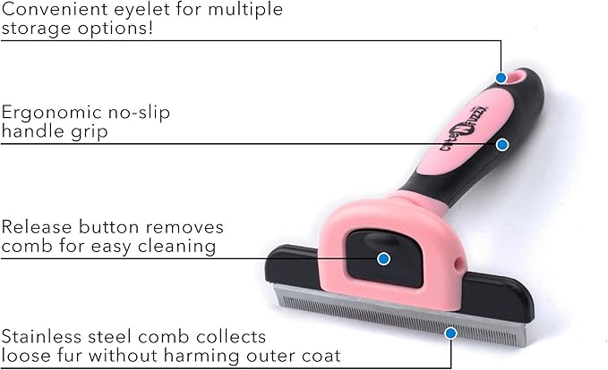 Deshedding Pet Grooming Comb, Pink, Large