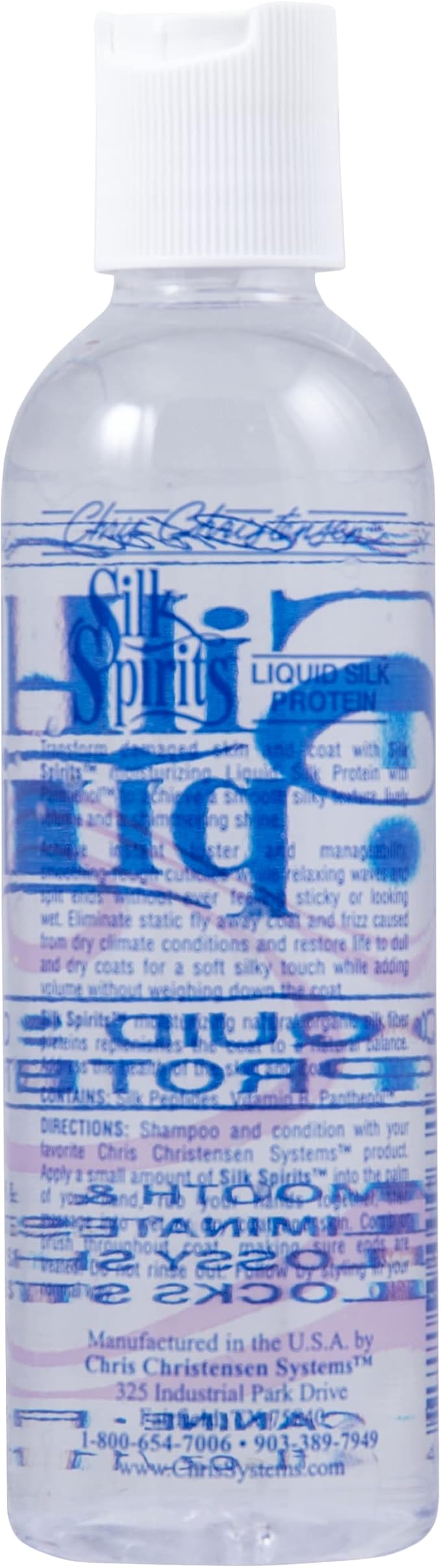 Chris Christensen Silk Spirits, Liquid Silk Protein, Dog Conditioner for Long Hair Dogs and Drop Coated Dogs, Groom Like a Professional, Made in USA, 4 oz