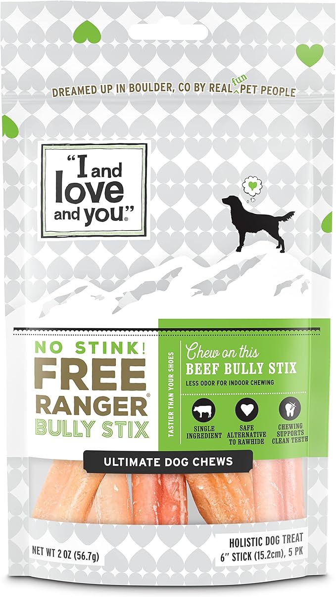 I and love and you No Stink Free Ranger Bully Stix - Beef - Rawhide Alternative, Single Ingredient, Free Range Grass Fed Beef, 6in, 5ct