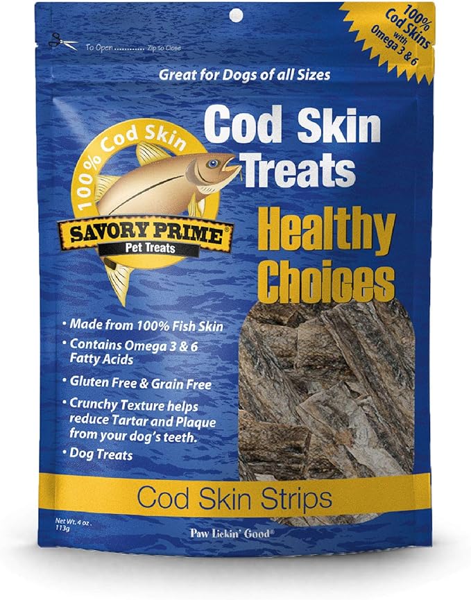 Savory Prime Cod Skin Fish Strips, 4-Ounce, All Breed Sizes (49662004)