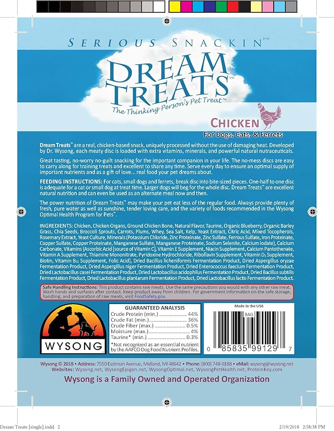 Wysong Dream Treats Chicken - for Dogs/Cats/Ferrets - Raw Food - 4.9 Ounce Bag