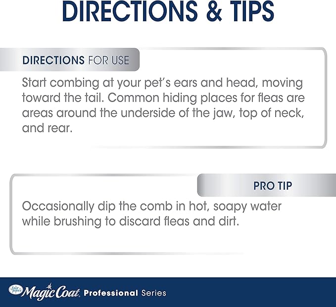 - Features tightly packed stainless steel teeth to easily remove fleas, ticks, and their eggs