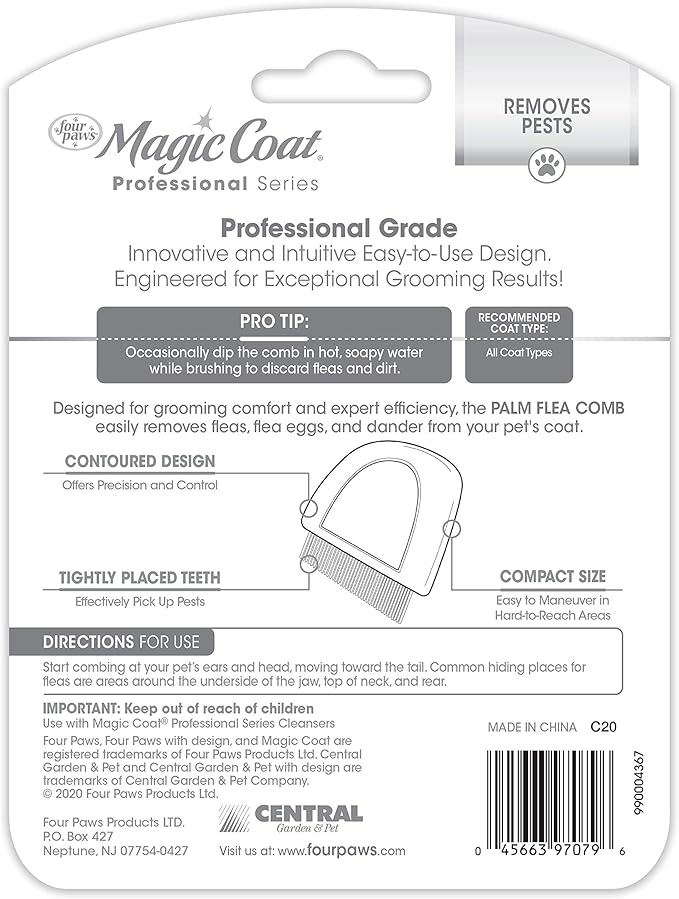 Magic Coat Professional Series Grooming Contoured Grip Palm Flea Comb for Dogs, 1 Count