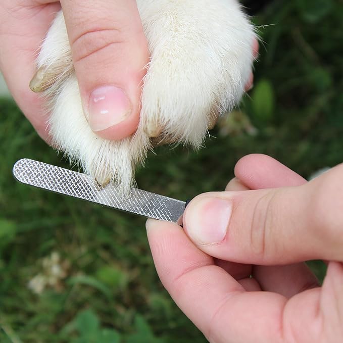 - A nail file at the end of the handle is used to trim the nail after cutting