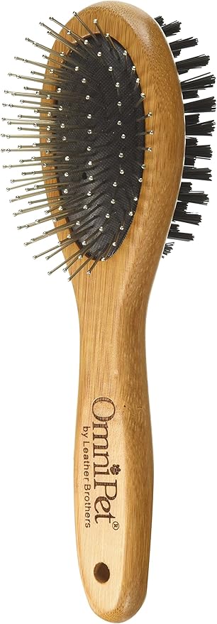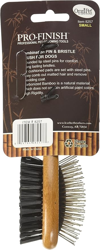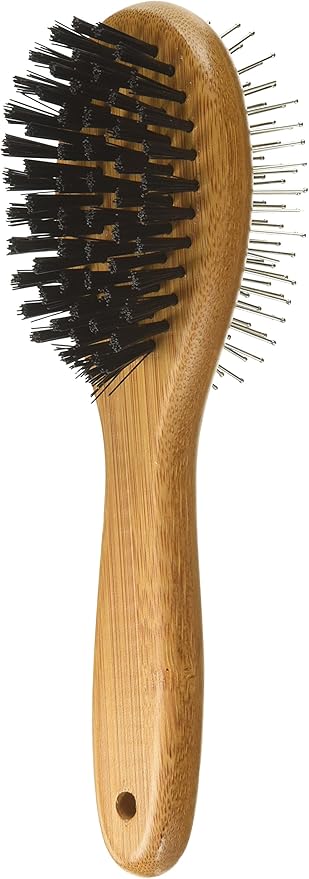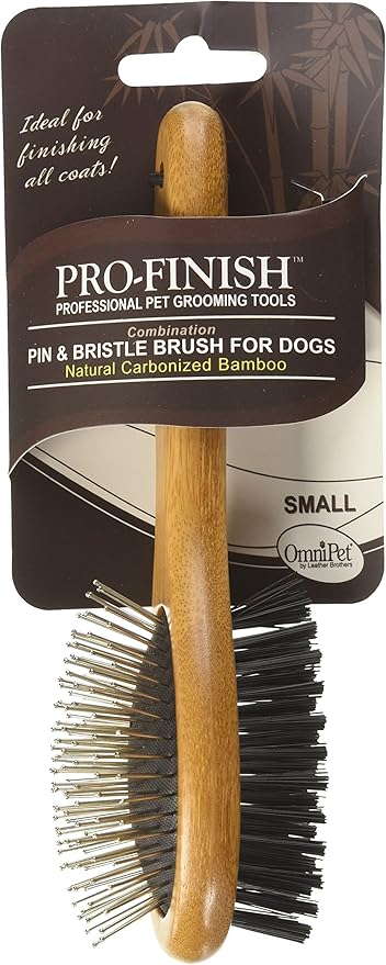 Pro-Finish Bristle and Pin Grooming Brush Combination with Carbonized Bamboo Handle, Small, 7.5"