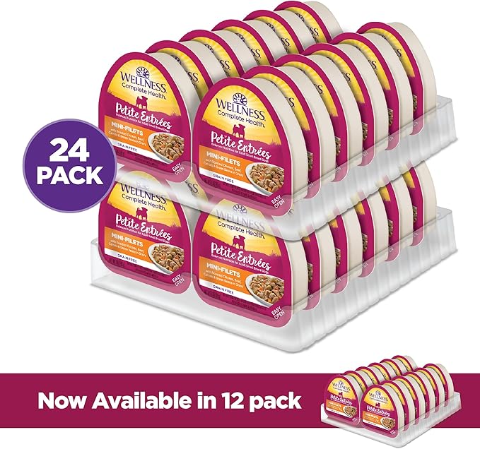 Wellness Petite Entrees Mini Fillets Natural Wet Small Breed Dog Food, Roasted Chicken, Beef, Carrots & Green Beans, 3-Ounce Cup (Pack of 24)