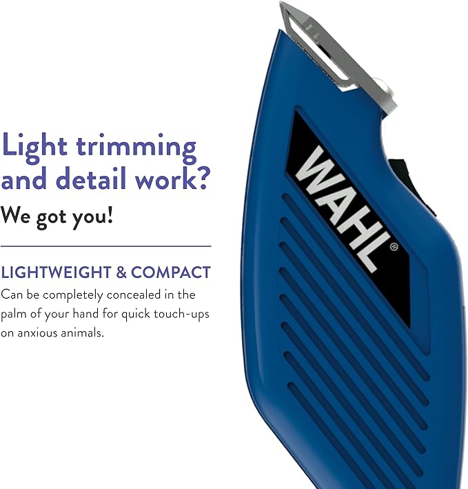 - Small, lightweight trimmer can be completely concealed in the palm of your hand for quick touch-ups on anxious animals