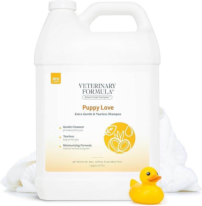 - EXTRA GENTLE – Recommended by vets for puppies first year, Veterinary Formula Solutions Puppy Love Extra Gentle Tearless Shampoo is sulfate and DEA-free. This puppy shampoo cleanses without drying out delicate skin, leaving coats soft and fluffy.