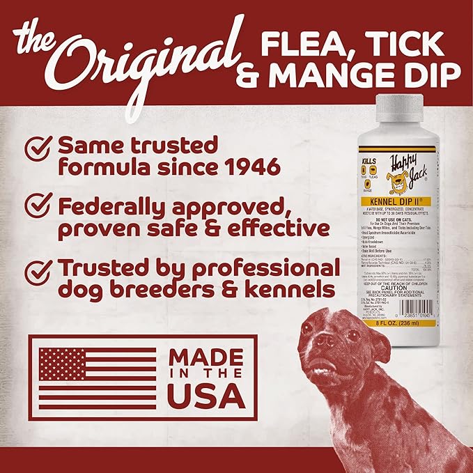 Happy Jack Kennel Dip Dog Flea and Tick Treatment & Prevention, Made in USA, Spray Yard & Home 30-Day Control, Kills Fleas, Ticks, Deer Ticks, Mange, Lice, for Puppies, Small to Large Dogs (16 oz)