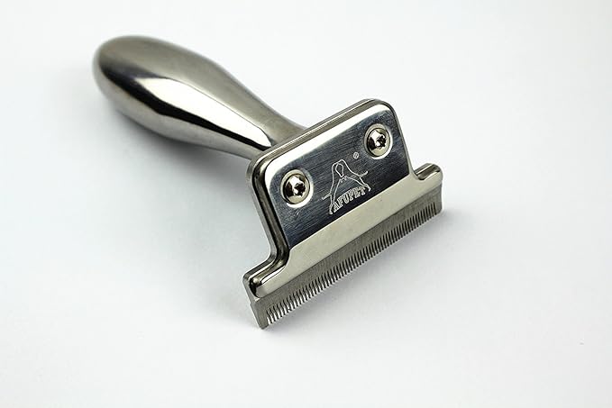 De Shedding Tool for Grooming Dogs & Cats * The WOOFIE Wand * The Original Chrome Dog Comb is Stainless Steel Handled Shedding Brush
