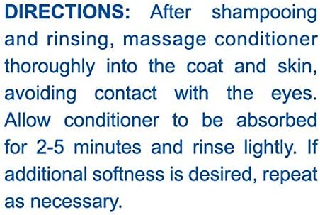 - Recommended Uses For Product : After shampooing and rinsing, massage conditioner thoroughly into the coat and skin, avoiding contact with the eyes. Allow conditioner to be absorbed for 2-5 minutes and rinse lightly. If additional softness is desired, repeat as necessary. After shampooing and rinsing, massage conditioner thoroughly into the coat and skin, avoiding contact with the eyes. Allow conditi… See more