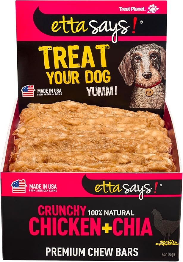 etta says! Premium Crunchy Chew Bars - All Natural - Chicken + Chia - Made in The USA (12 Count Pack of 1)