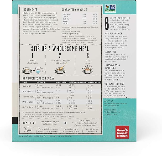 The Honest Kitchen Dehydrated Limited Ingredient Fish Dog Food, 4 lb Box