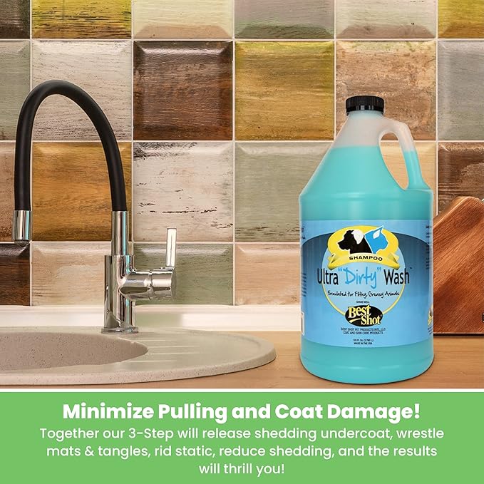 - For Dogs and Cats: Our shampoo is suitable for dogs, cats, puppies, and kittens (over 12 weeks old) who are prone to over-shedding. The shampoo comes in a 1-gallon bottle. Matching Ultra Dirty Wash Shampoo and Ultra Vitalizing Mist are also available