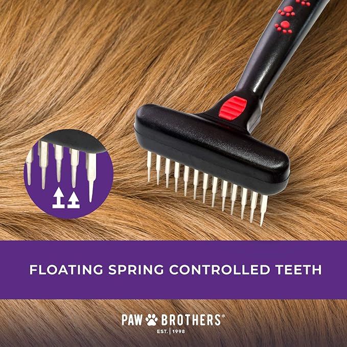 RYAN'S PET SUPPLIES Paw Brothers Magic Spring Undercoat Rake for Dogs, Professional Grade, Spriing Loaded Pins, Comfort Grip, 6.8 in