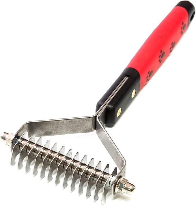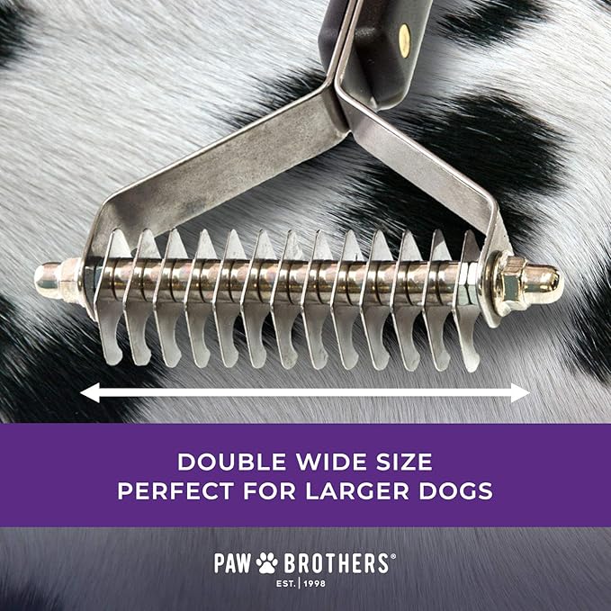 RYAN'S PET SUPPLIES Paw Brothers 13-Blade Coarse Double Wide Dematting Undercoat Rake for Dogs and Cats, Professional Grade, Dog Shedding Brush, Stainless Steel Blades, Rounded Gentle Teeth