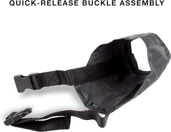 - Quick & Easy - The durable nylon is breathable and washable. Each quick-fit dog muzzle slips on and off with a quick-release buckle and adjustable neck strap