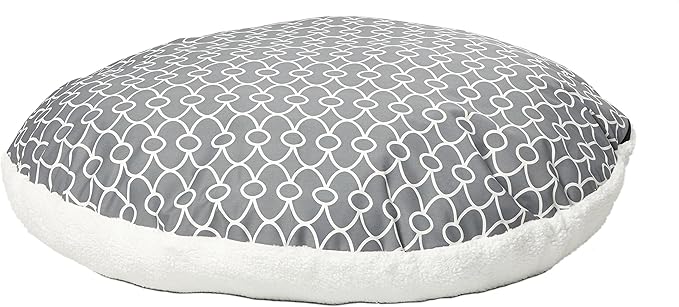 - Over-stuffed poly-fiber dog bed features Teflon Fabric Protector for long use. Dog pet bed measures 34 inches round x 8H", medium dog breed, gray