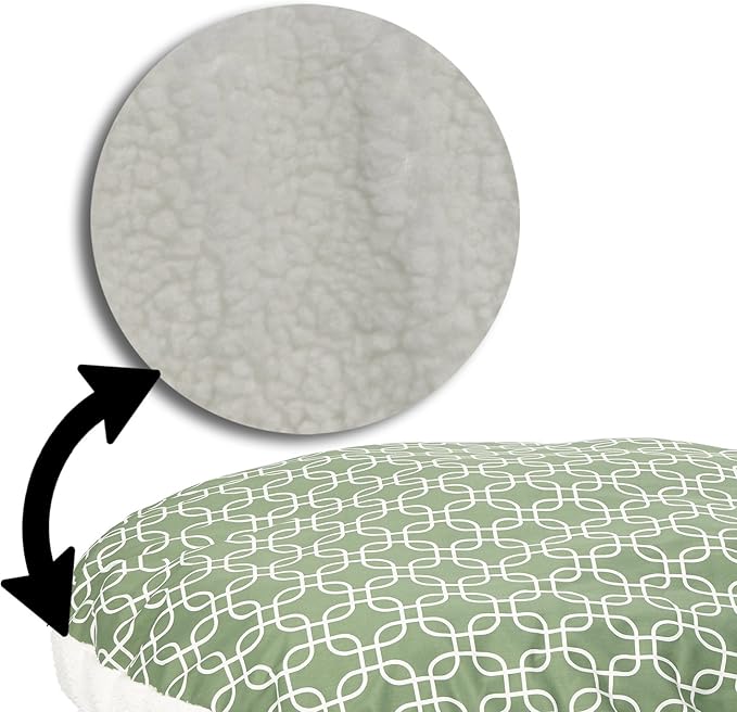 Midwest Homes for Pets PF0048T-FGR Over-Stuffed Dog Bed, Large, 48" Round, Large Dog Breed, Green Geometric Pattern
