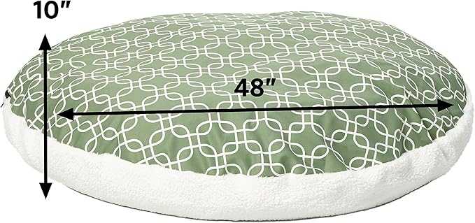 - Over-stuffed poly-fibber dog bed features Teflon Fabric Protector for long use. Dog pet bed measures 48 inches round x 10H", large dog breed, green