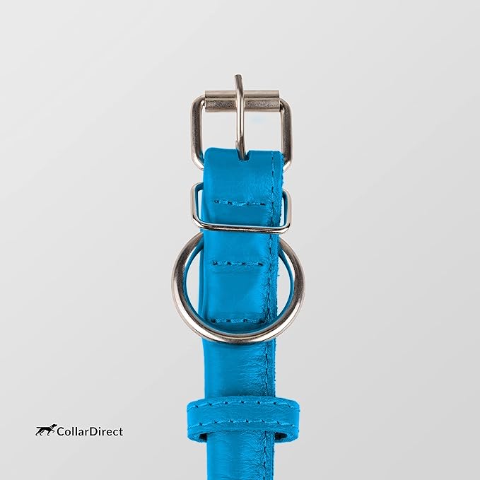 CollarDirect Rolled Leather Dog Collar, Soft Padded Round Puppy Collar, Handmade Genuine Leather Collar Dog Small Large Cat Collars 13 Colors (6-7 Inch, Light Blue Textured)