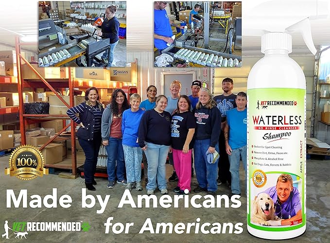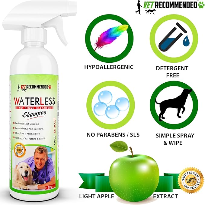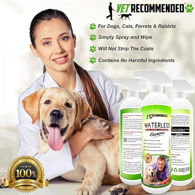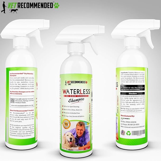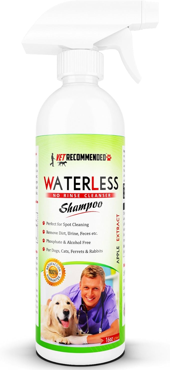 - Contains No Harmful Alcohol: Vet Recommended Waterless Pet Shampoo is a mild surfactant blend which is detergent free. Contains no alcohol or animal by products. We love your pet as much as you do.
